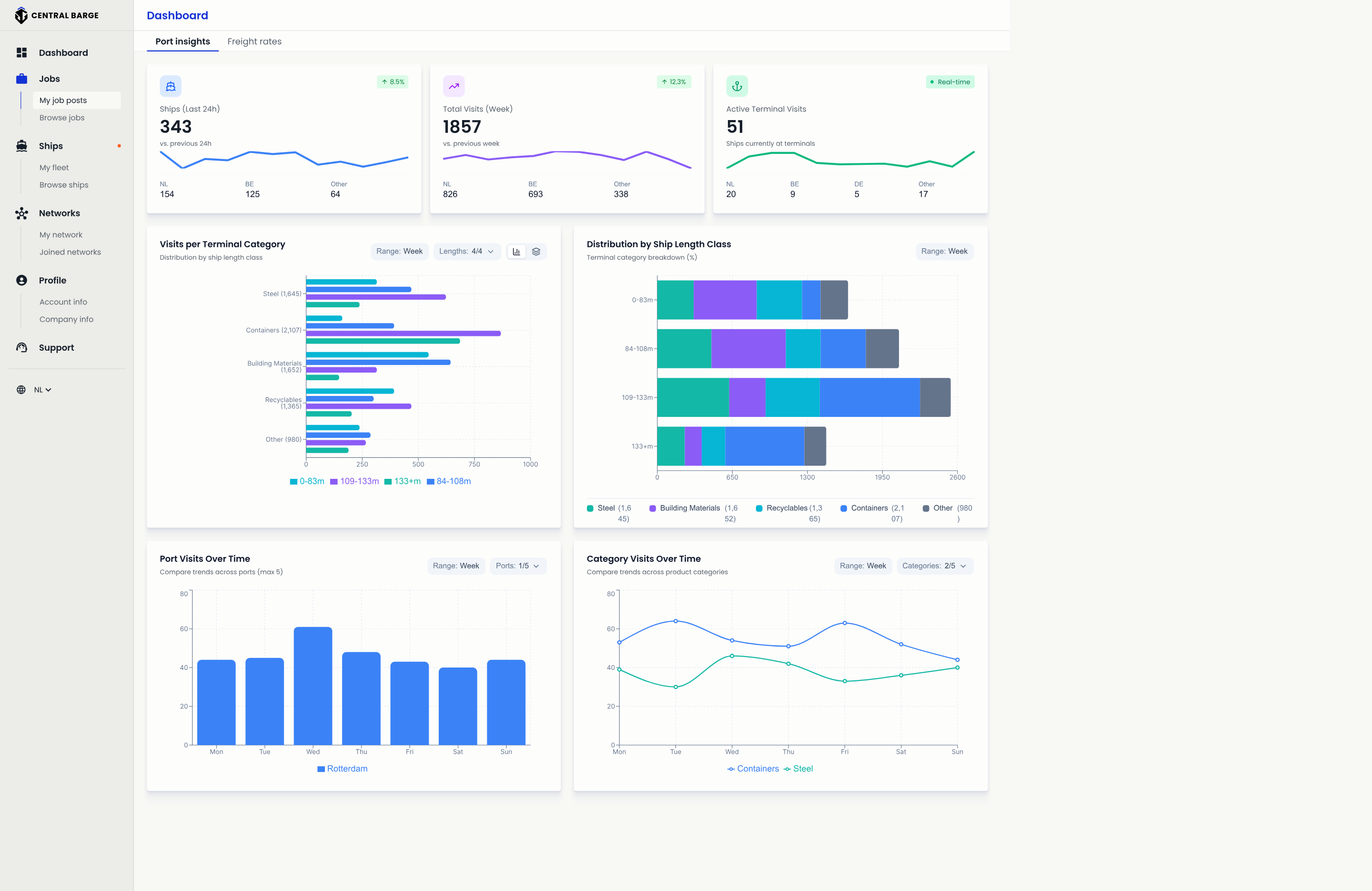 Plaats opdrachten, vind direct beschikbare schepen en neem beslissingen op basis van realtime data. Beheer uw transport efficiënter.